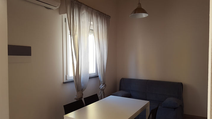 Completa la cucina un confortevole divano letto, la TV e il tavolo allungabile al centro che può comodamente ospitare sei persone.