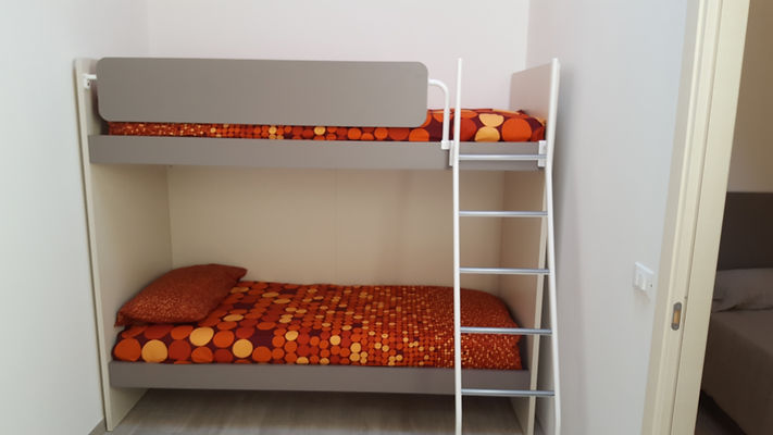 Letto a castello, in ampia cameretta dotata di armadio personale.